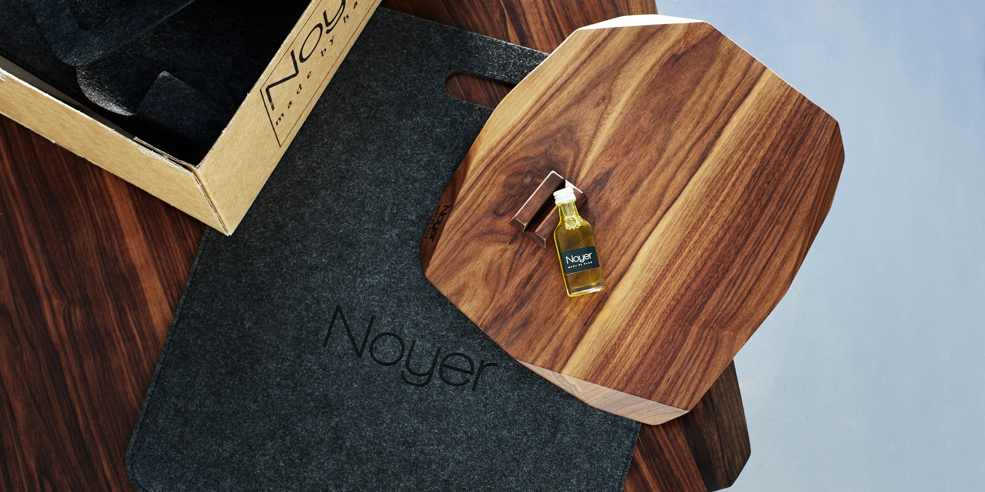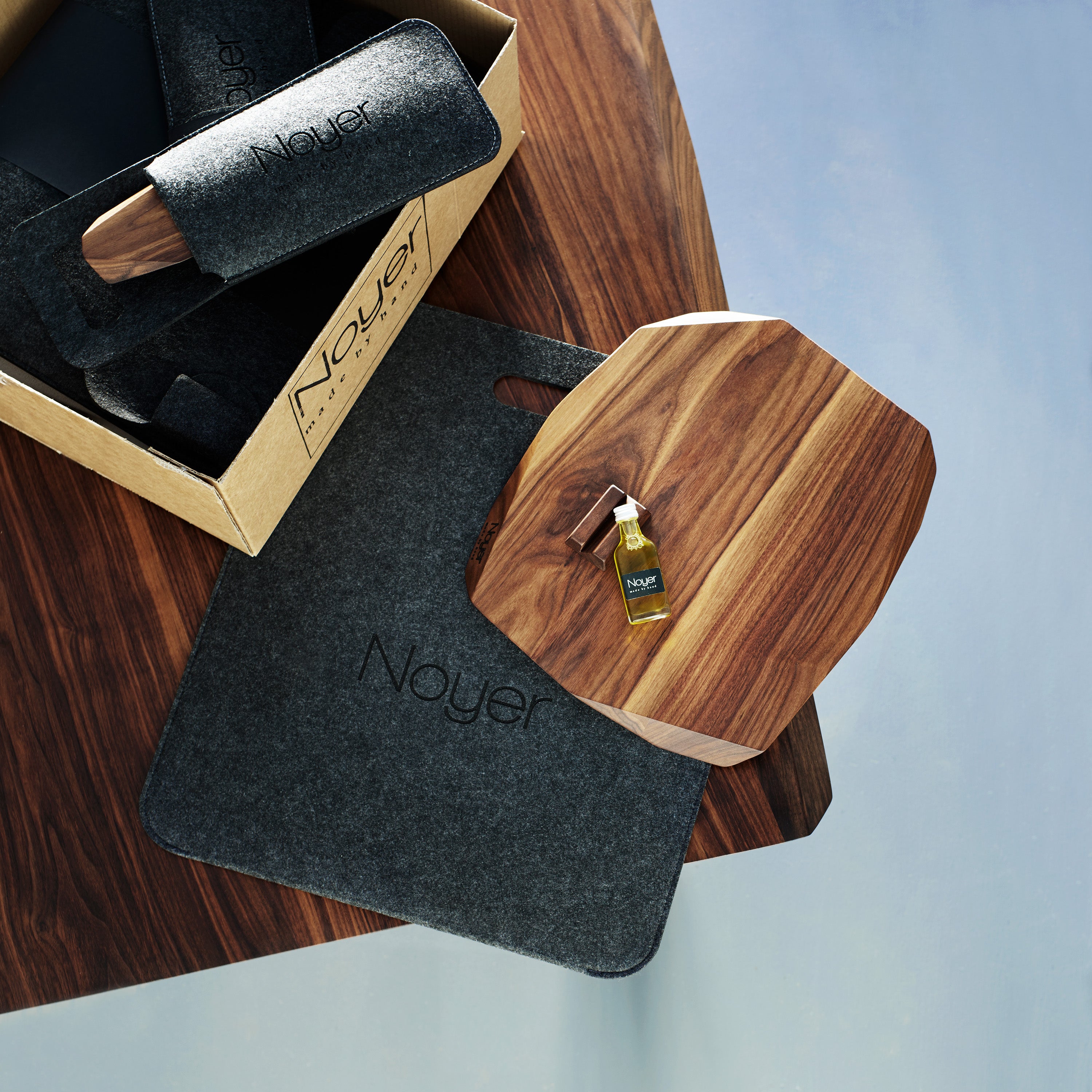 Wir empfehlen das Öl, das wir auch in der Produktion verwenden – ein lebensmittelechtes Öl, das die richtige Pflege bietet und das Holz langfristig schützt. Beim Kauf eines unserer Produkte ist eine kleine Flasche enthalten. Benötigen Sie mehr, können Sie uns jederzeit unter pelle@noyer.dk kontaktieren.