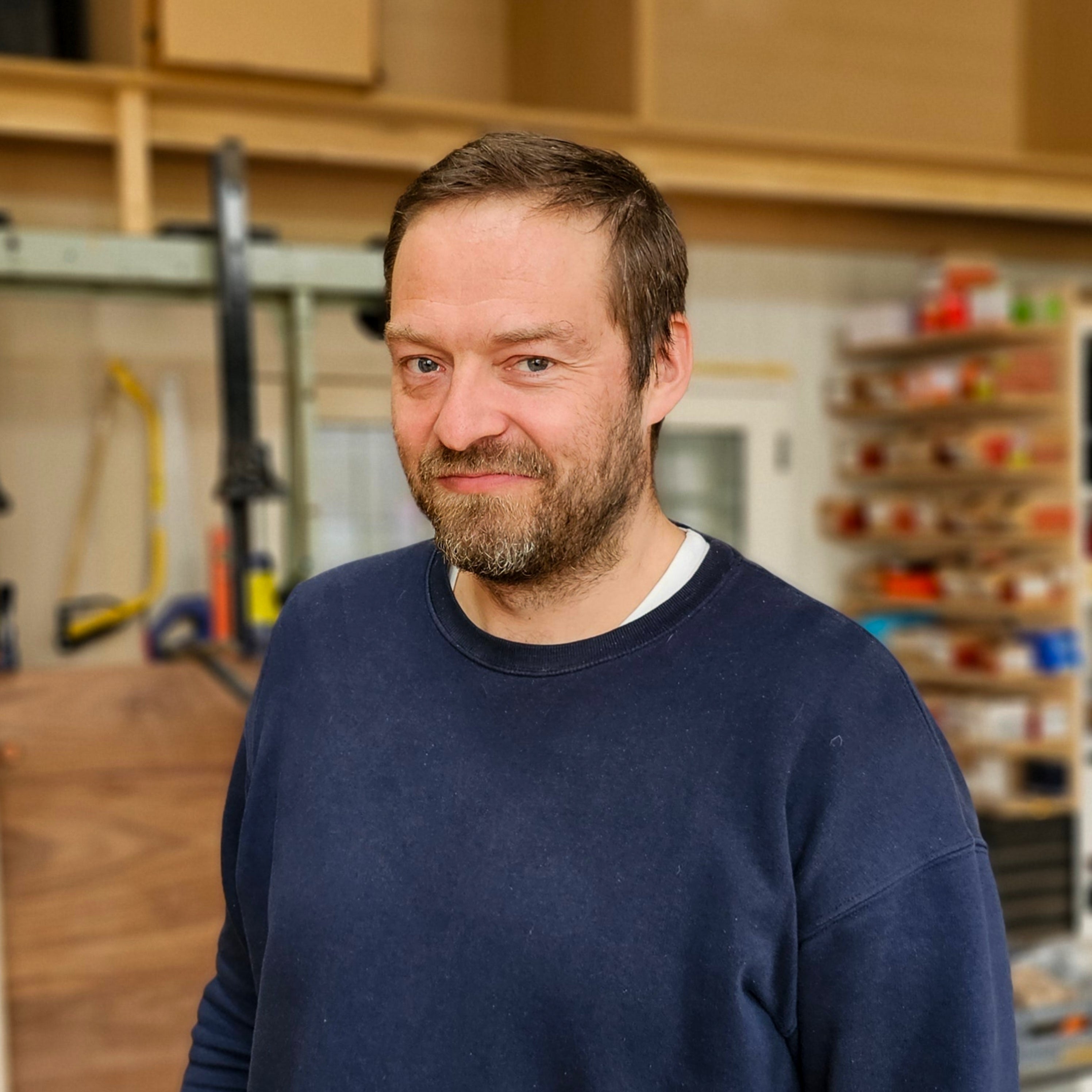 Nikolaj er utdannet bygningssnekker, og han står for designet og han er ansvarlig for produksjonen.